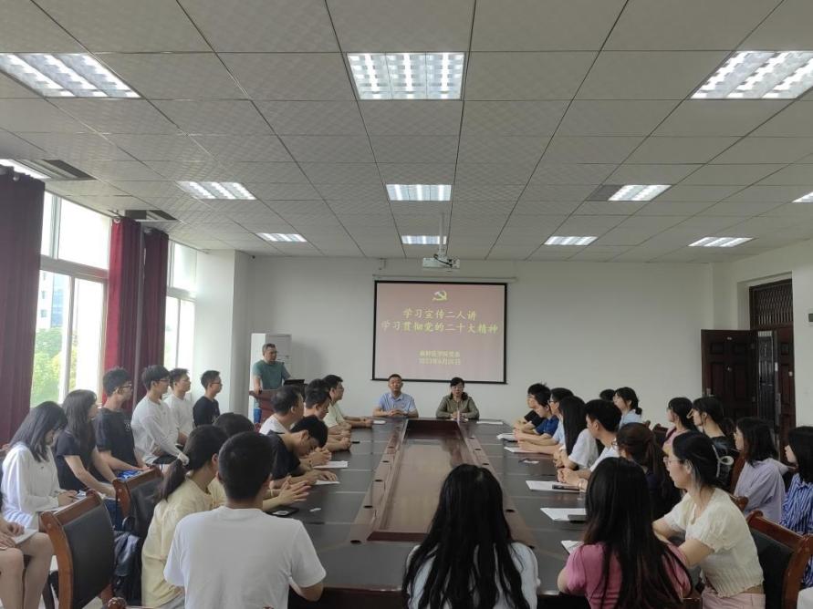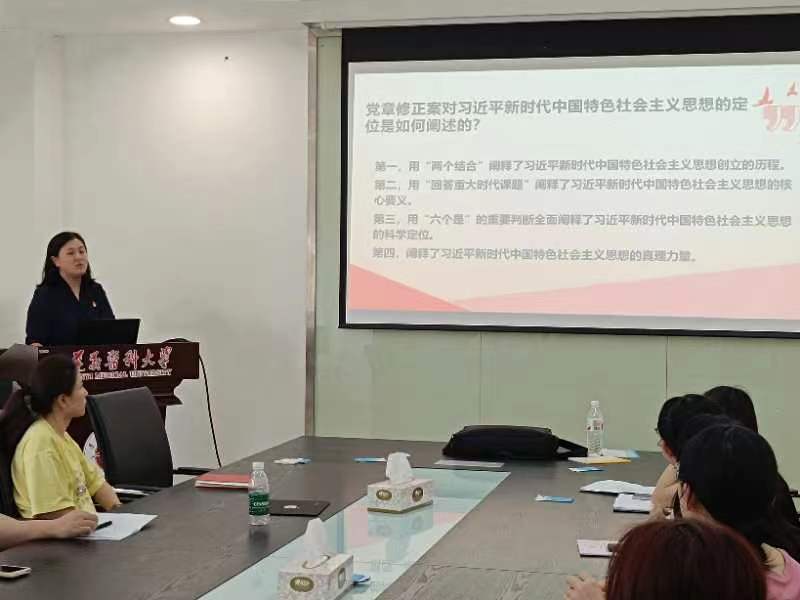 6月20日下午在科研楼504,麻醉医公司党委副书记叶栋恒围绕党章中对习近平新时代中国特色社会主义思想的定位详细解读了党章建设史和党的二十大对党章作出的修改,为党员更好理解党章的精神实质、把握党章一系列规定要求提供了参考。威廉体育williamhill教工党支部副书记张宇结合自身科研求学经历对开展主题教育的意义和要求,对推动党和国家事业发展,具有重要意义方面进行了深入解读。