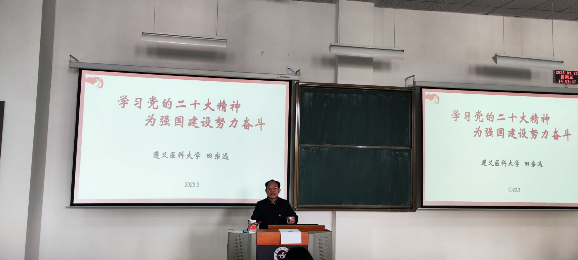 为深入学习宣传贯彻党的二十大精神,用党的初心使命感召青年学子,3月22日下午在第三教学楼十八阶梯,威廉体育williamhill邀请到公司关工委副主任田宗远教授为广大青年学子作了一场主题为“学习党的二十大精神,为强国建设努力奋斗”的宣讲报告。麻醉医公司党委副书记叶栋恒,员工第一党支部副书记韦锋及20级全体同学参加宣讲。