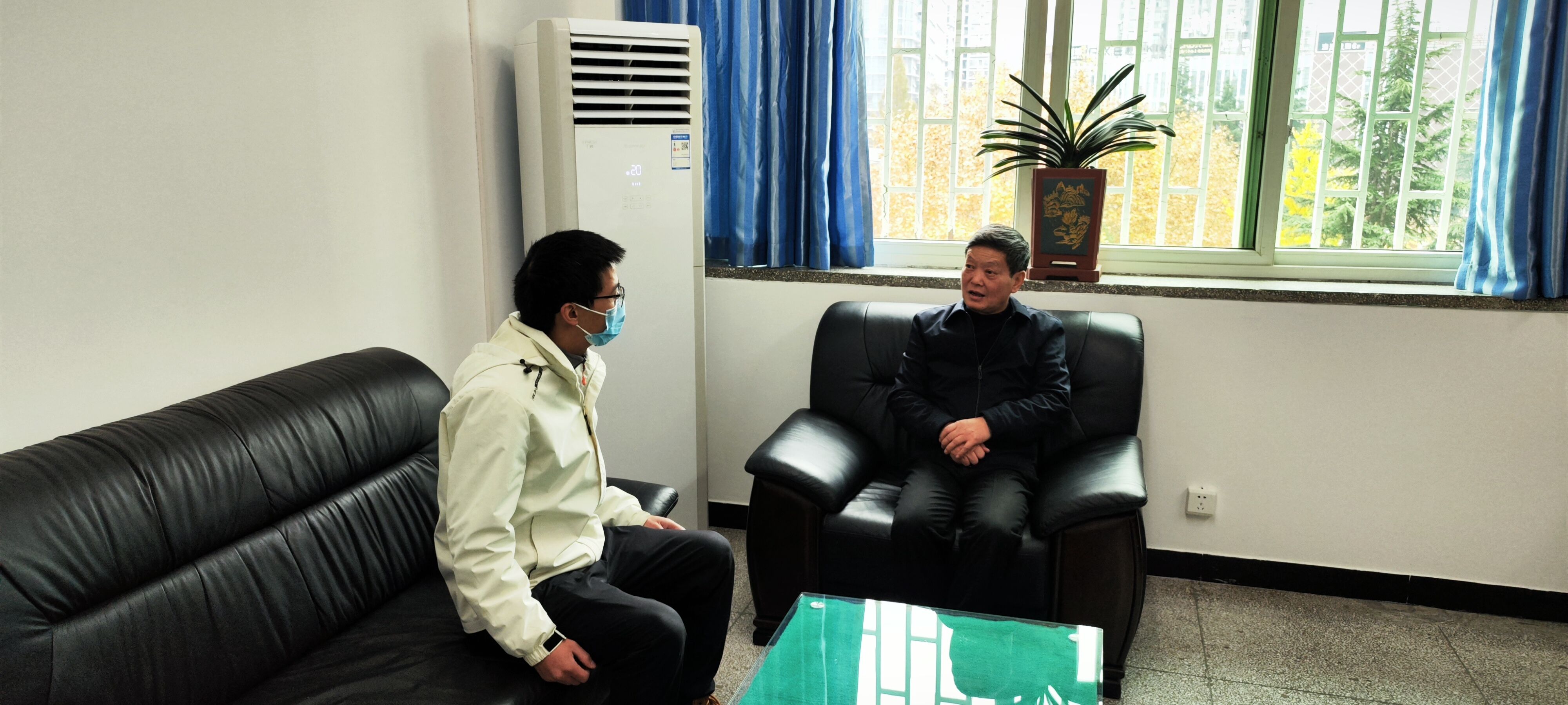 12月1日上午,公司党委委员、附属医公司党委书记唐自力与所联系2020级1班员工刘强同学进行座谈交流,麻醉医公司党委副书记叶栋恒、员工第一党支部副书记韦锋共同参加交流座谈。