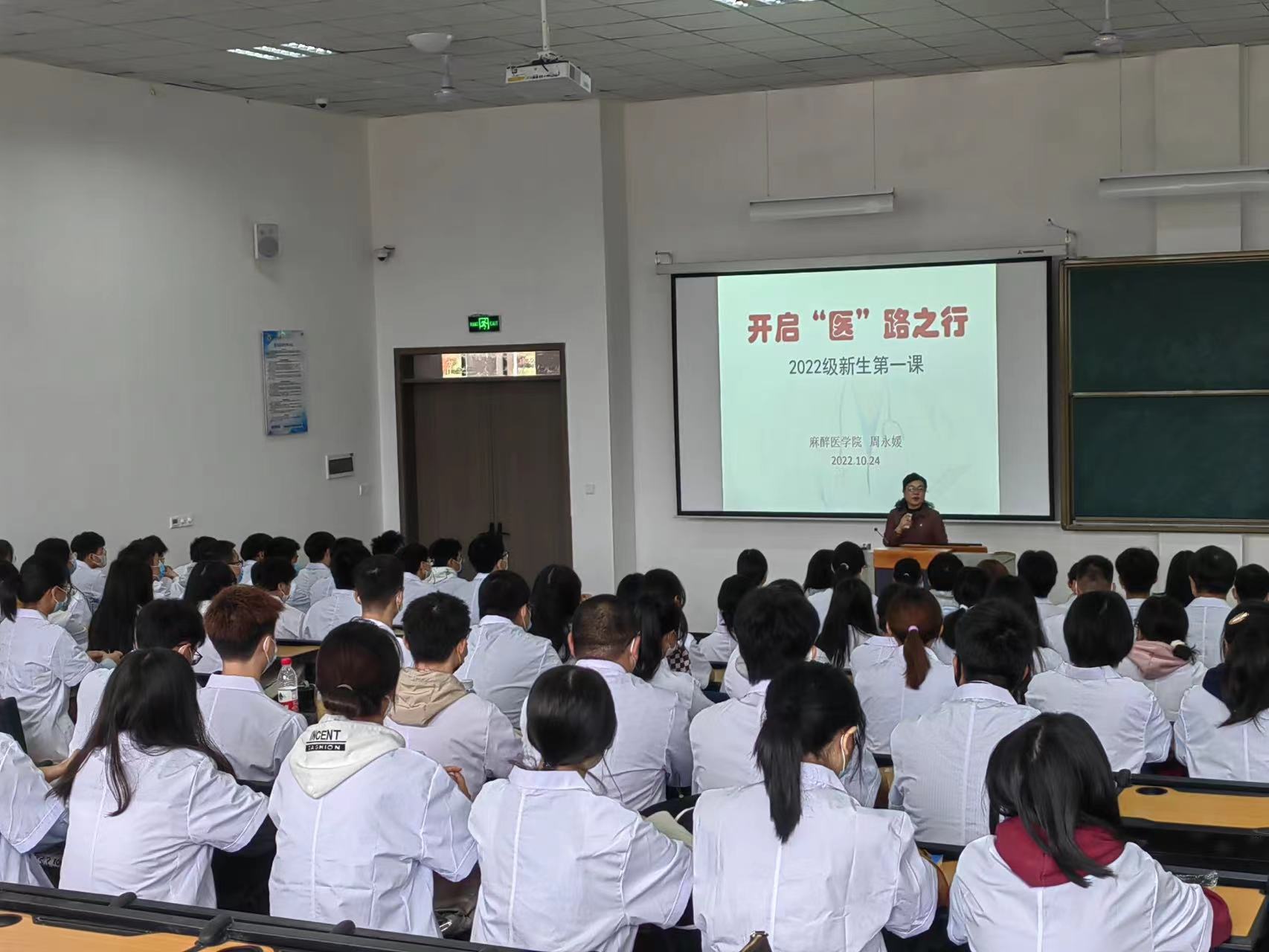 10月24日上午,2022级本科新生见面会暨开学第一课在二十阶梯顺利召开,麻醉医公司党委书记周永媛、经理刘兴奎、员工第二党支部书记陈俊、员工第一党支部副书记韦锋、办公室负责人张超、辅导员王唯及2022级威廉体育williamhill全体本科新生参加。见面会由麻醉医公司党委副书记叶栋恒主持。