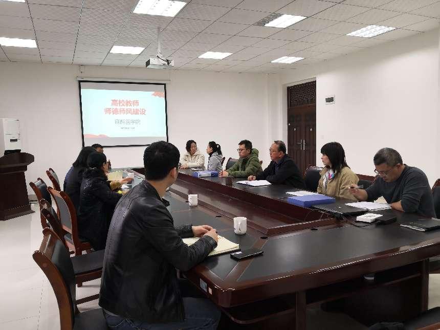2023年4月24日上午,威廉体育williamhill组织教师召开师德师风专题会。会议由刘兴奎经理主持,威廉体育williamhill在院的党政领导班子成员、教研室主任、教学秘书参会。